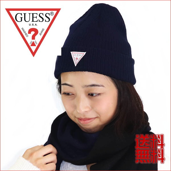 ゲス ニット帽 GUESS ネイビー ワンポイントマーク AI4A-8858DS ギフト プレゼント クリスマス