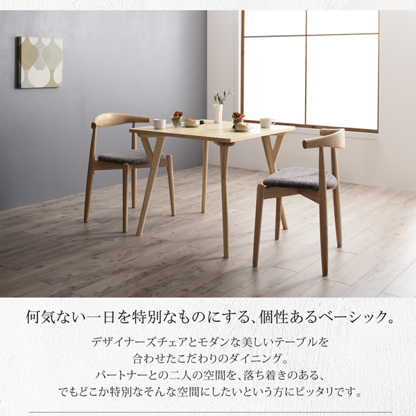 北欧モダンデザインダイニングシリーズ 【Routroi】ルートロワ 3点セット(テーブルW80+チェア2脚) 【チェア色】アイボリー