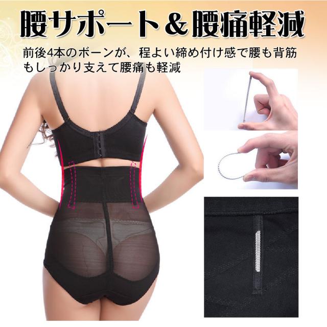 ●前後の4本のボーンが腰を支えて、程よい締め付け感で産後の体型補正や骨盤補正、腰痛軽減はもちろん、くびれも作れます。