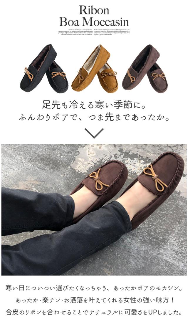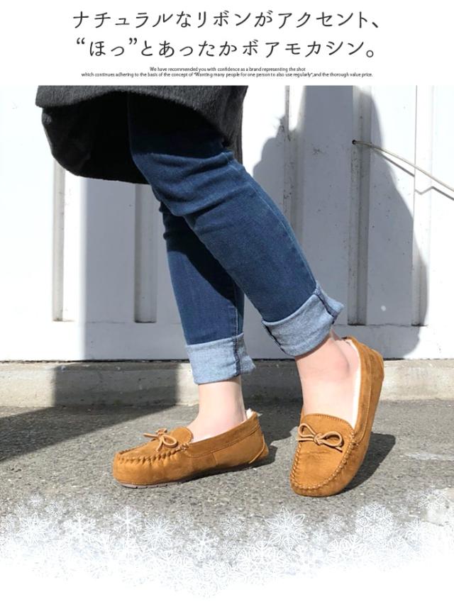 靴 レディース ボア モカシン ボアモカシン シューズ リボン ボア あったか 防寒 ぺたんこ 楽チン 値下げ セール 送料無料