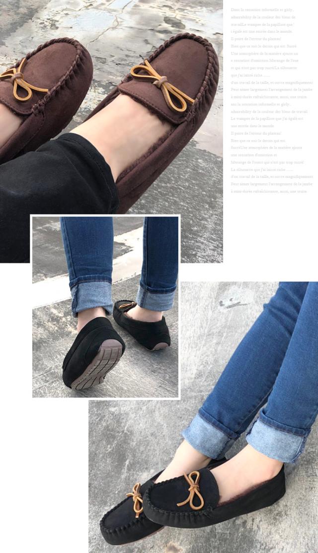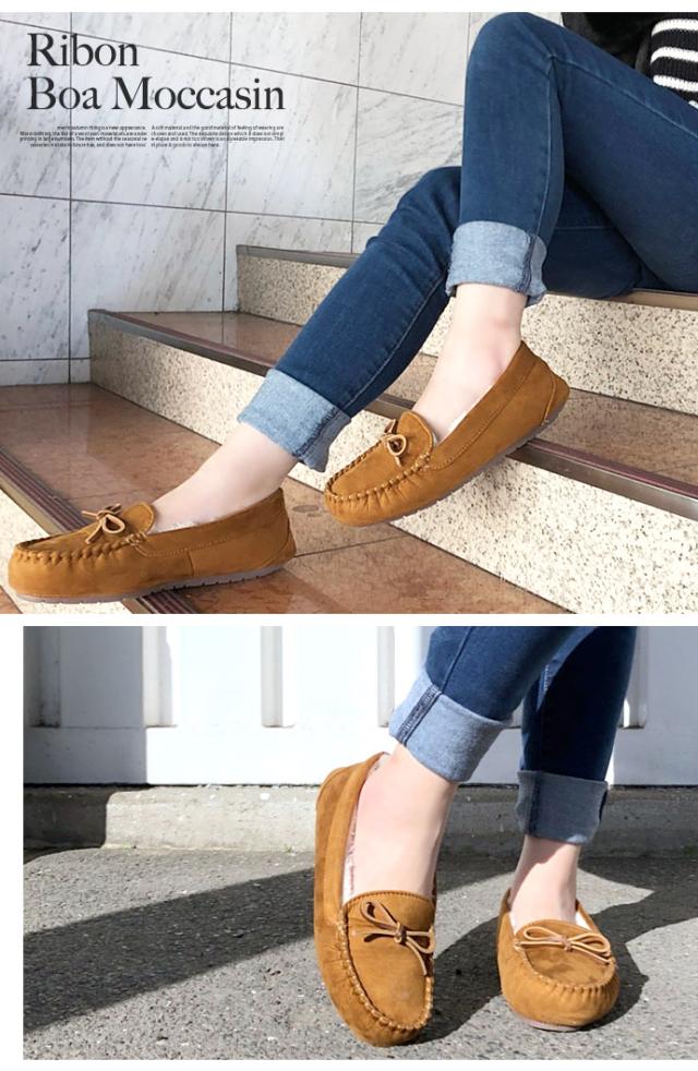 ナチュラルなリボンがアクセント、ボアモカシン。ふわふわ、もこもこのファーが足をすっぽり包み込む。履いた瞬間から感じる暖かさと心地よさがやみつきになる♪硬く歩きづらいソールではなく、しっかりとした履きごたえながらもほどよいしなり具合で歩行の疲れを軽減。デニム、スカート、ショートパンツ、タイツetc...あらゆるファッションアイテムと相性抜群!あったか・楽チン・お洒落を叶えてくれる女性の強い味方!