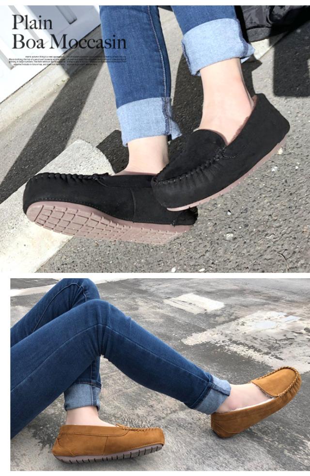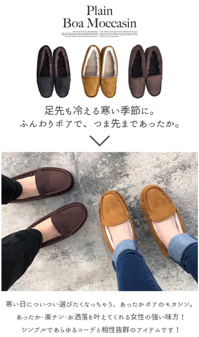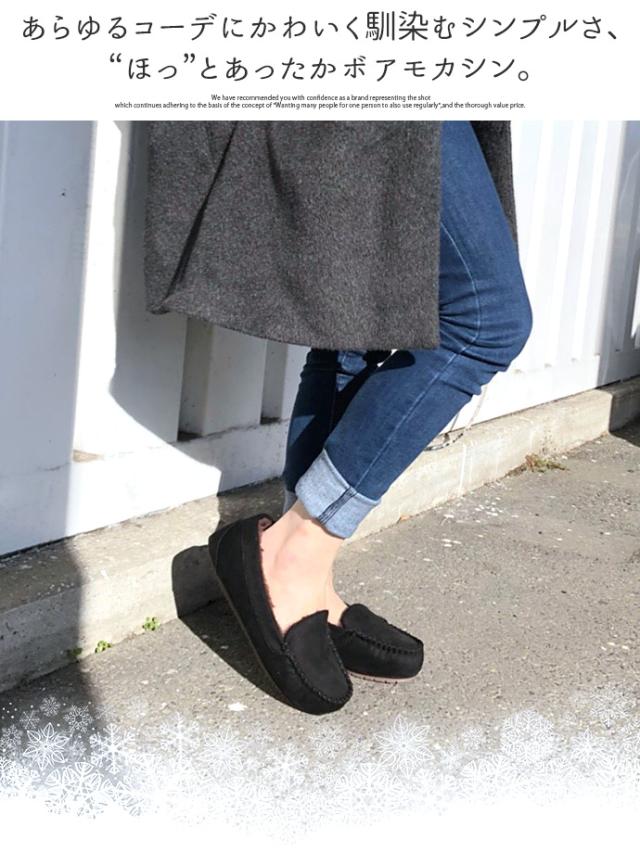 靴 レディース ボア モカシン ボアモカシン シューズ 無地 プレーン あったか 防寒 ぺたんこ 楽チン