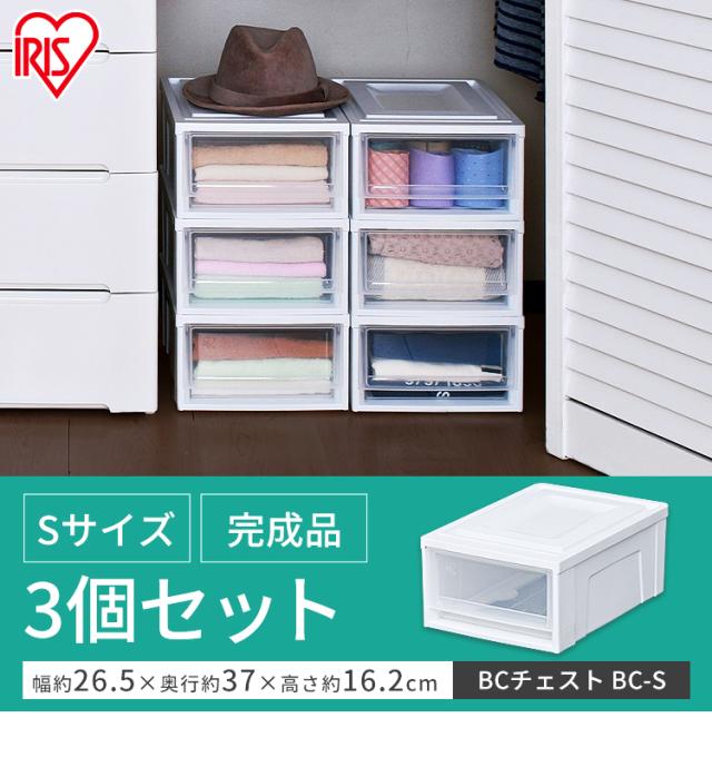 ★クーポンあり★ 【3個】 収納ボックス 引き出し 一段 収納ケース 幅26.5 奥行37 高さ16.2 衣類収納ケース チェスト 完成品 タンス 衣装ケース アイリスオーヤマ 収納 押入れ クローゼット クリア コンパクト 積み重ね プラスチック BCチェスト Sサイズ 浅型 BC-S *