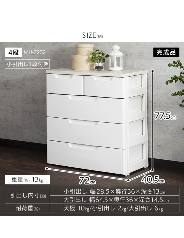 ★クーポンあり★ チェスト たんす 棚 引き出し 引出し アイリスオーヤマ 収納ケース 収納ボックス チェスト 4段 MUチェスト MU-7232 押入れ クローゼット 木天板 大容量 衣類収納 衣装ケース 引っ越し 洗面所 脱衣所 子供部屋 小物収納 白