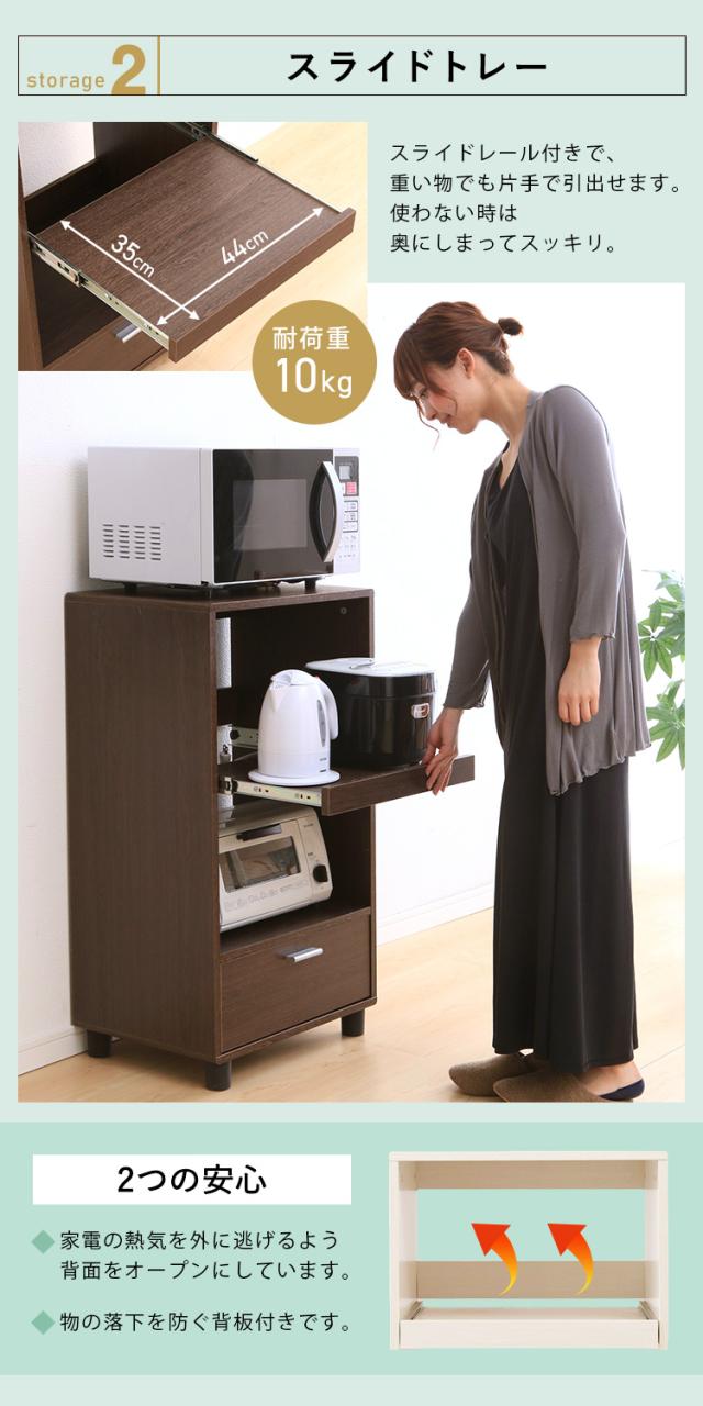 上部棚はフルスライドレールが付いているので、湯気の出る炊飯器も安心して使用可能です。