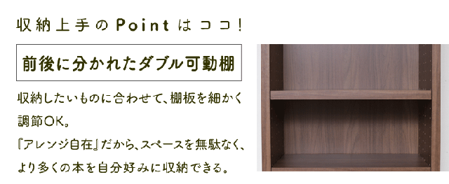 可動棚を上下・前後で調整することができ、収納するものに合わせて高さを調節することが出来ます!