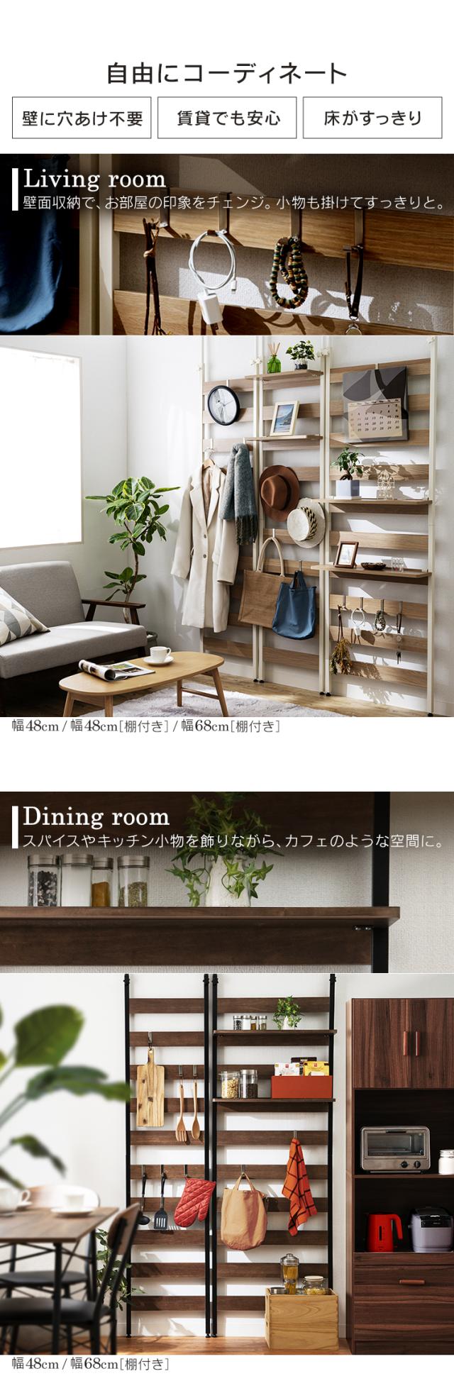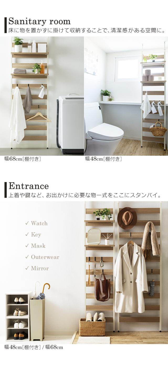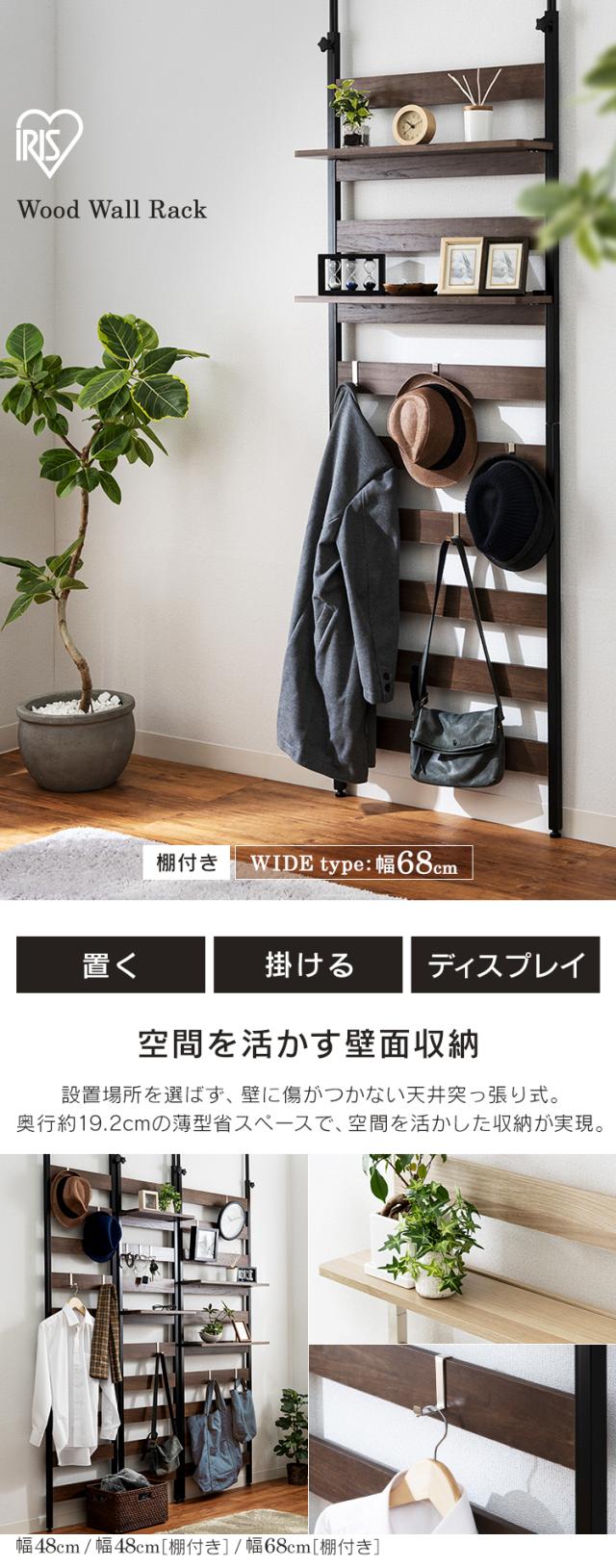 棚 壁面収納 つっぱり 壁掛け収納 突っ張りラック ラダーラック付き ウッドウォールラック WLR-T66 突っ張り ラック 壁面家具 壁面収納 キッチン収納 キッチン家具 リビング家具 リビング収納 アイリスオーヤマ