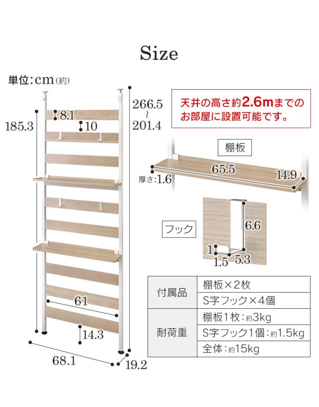 幅約68.1×奥行約19.2×高さ201.4cm〜266.5cm