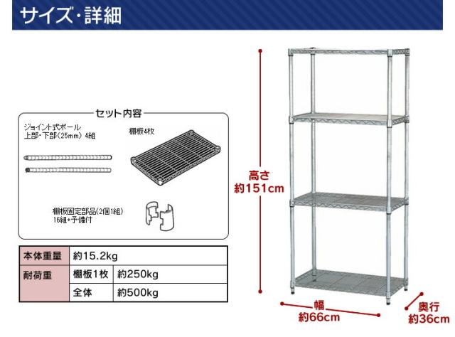 ■材質:スチール(クロームメッキ)・ ABS樹脂(棚板固定部品)