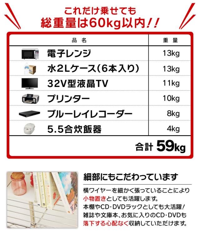 ◎耐荷重:ポール 約20kg、棚板 約50kg、全体 約100kg