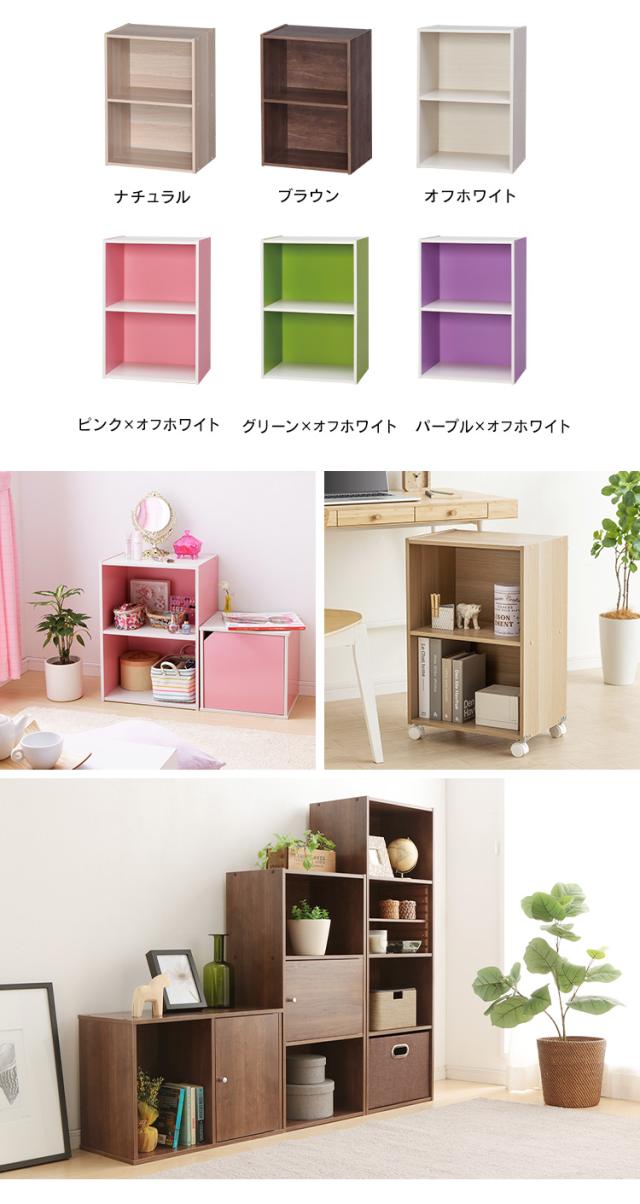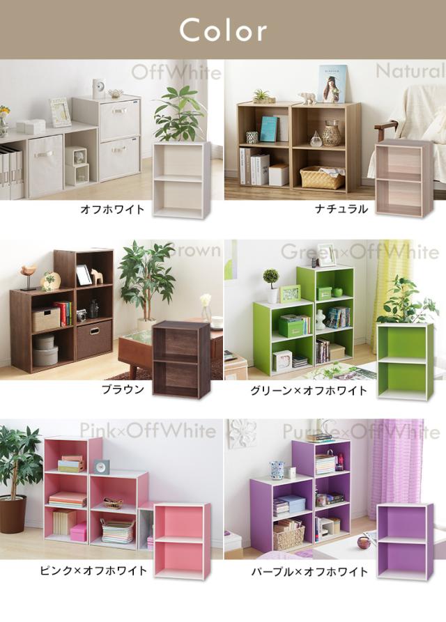 ※ピンク/オフホワイト、グリーン/オフホワイト、パープル/オフホワイトは、天板・底板・棚板が木目調(オフホワイト)になっています。