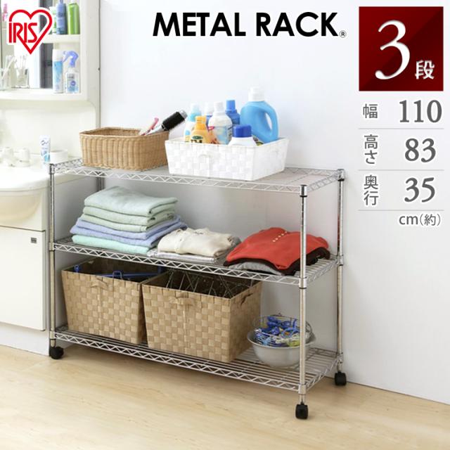 ★クーポンあり★ 棚 スチールラック ハンガーラック 幅110 3段 MTO-1108C キャスター付き アイリス メタルラック ラック スチール スチールシェルフ 収納棚 収納ラック キッチン オフィス 高さ調整 スリム ハンガー 新生活 アイリスオーヤマ