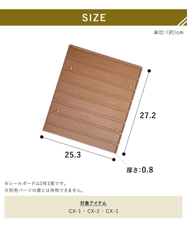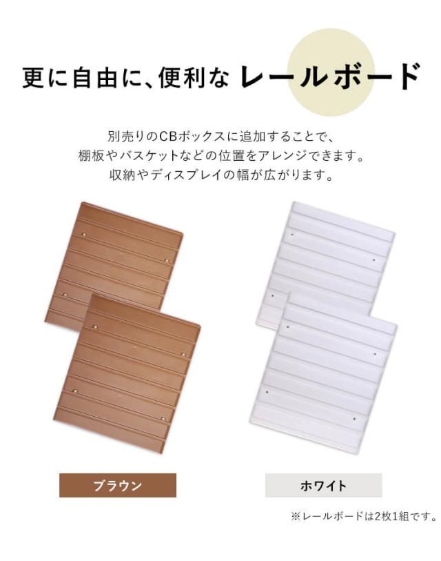 カラーボックス(CBボックス)にプラスチック引出し、バスケット、CDラック、棚を取付ける際に必要なレールボードです。