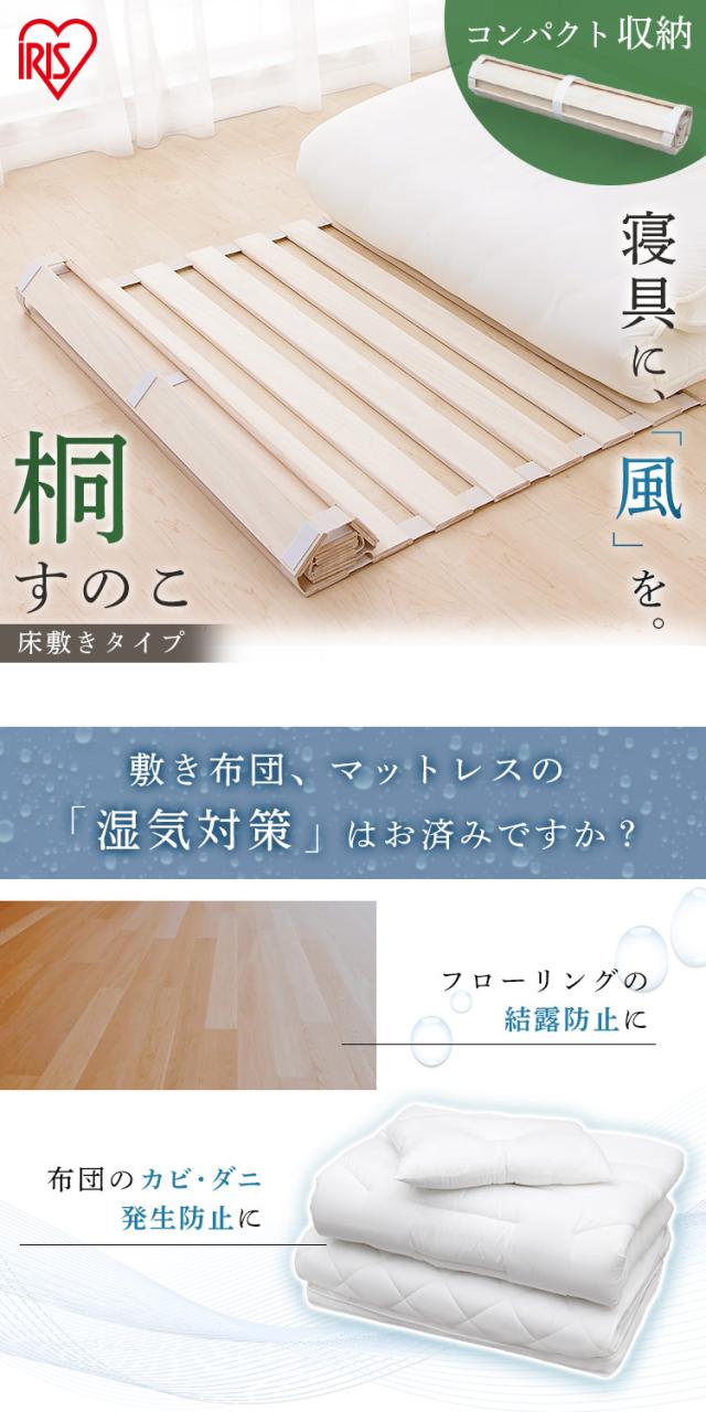 すのこマット シングル ベッド マット 桐すのこ 床敷きタイプ ロール式 ダニ カビ 結露 湿気 通気性 抗菌効果 耐久性 すのこ コンパクト コンパクト収納 すのこマット アイリスオーヤマ KSM-100R