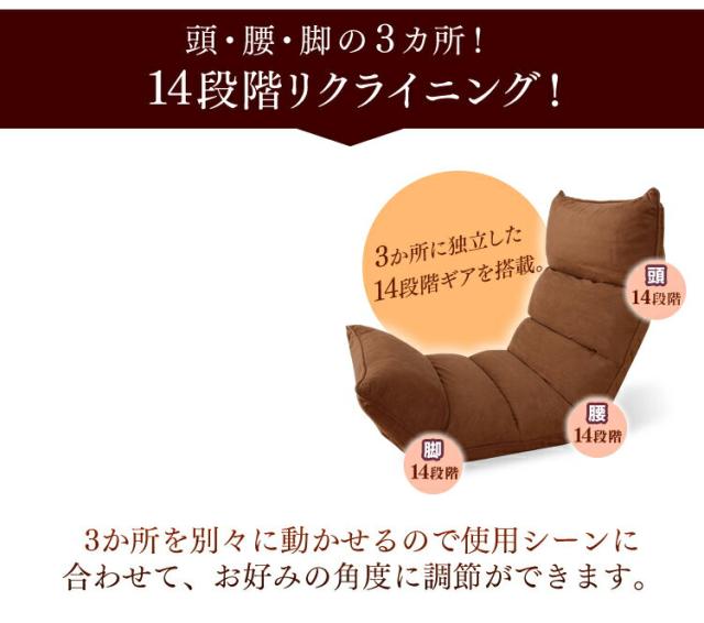 頭部・腰部・脚部の3カ所に14段階リクライニングを採用しています。使用シーンに合わせてお好きな角度に調整いただけます。