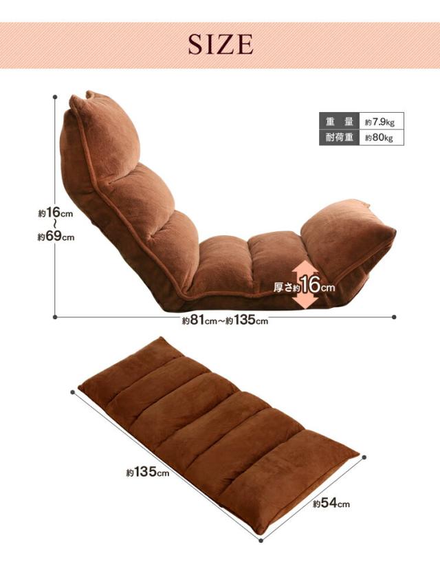 背を寝かせた時:幅約54×奥行約135×高さ約16