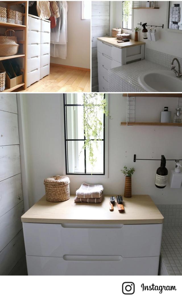 シンプルなデザインで家中どこでも大活躍する、木天板付きのチェストです。