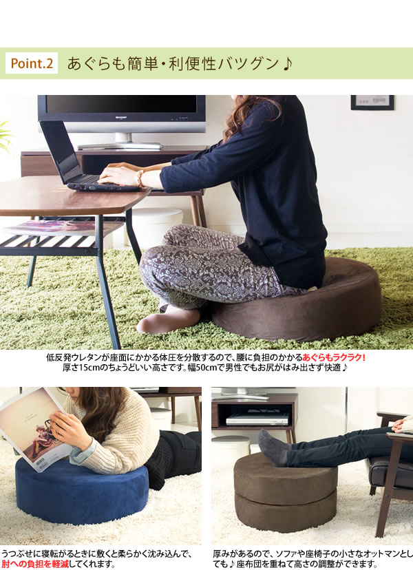 ★クーポンあり★ 座椅子 コンパクト クッション 低反発 あぐら 極厚 低反発ウレタン 丸型 丸 円形 四角 角型 可愛い おしゃれ かわいい 北欧 座椅子 15cm厚 布地 CN-50R 座布団 新生活 インテリア