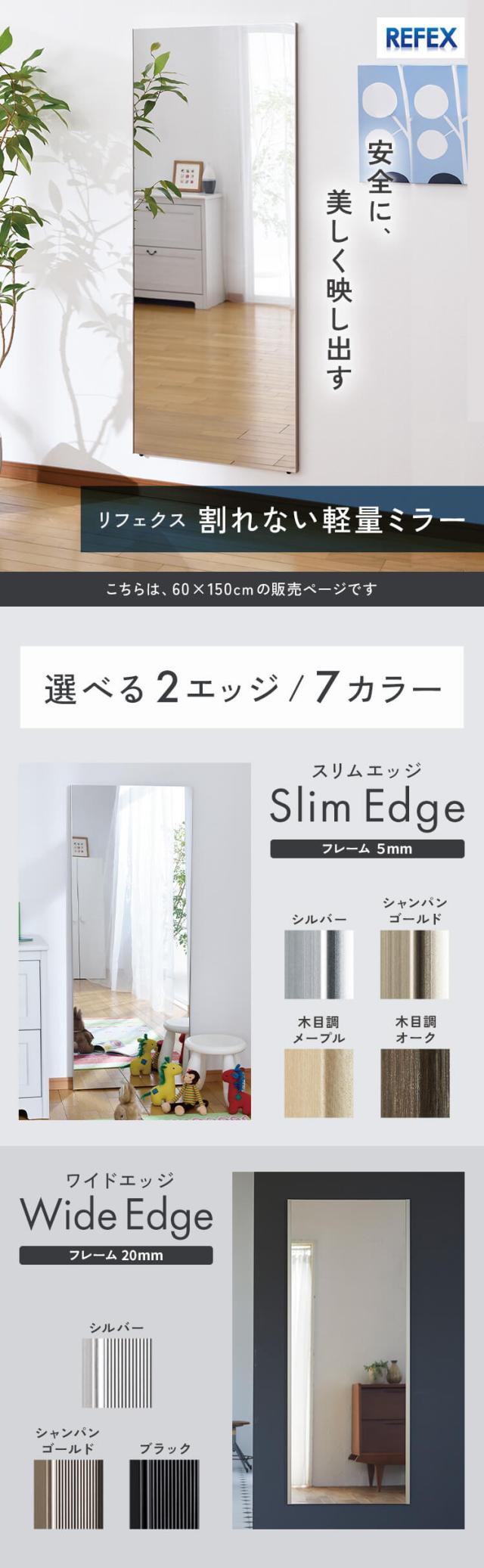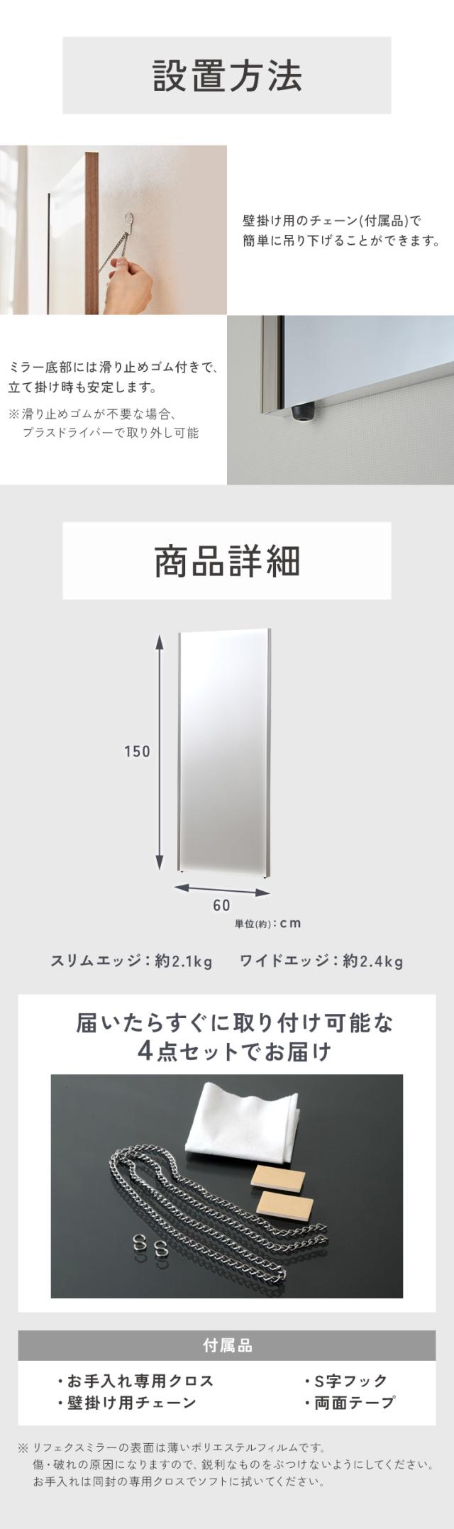 鏡 壁掛け 全身 かがみ ミラー 割れない 姿見 軽量 軽量ミラー 全身ミラー 60×150cm 全身かがみ 国産 超軽量 安全 ウォールミラー 壁掛け鏡 壁掛け ミラー 飛散防止 フィルムミラー リフェクス リフェクスミラー おしゃれ モダン 北欧 省スペース
