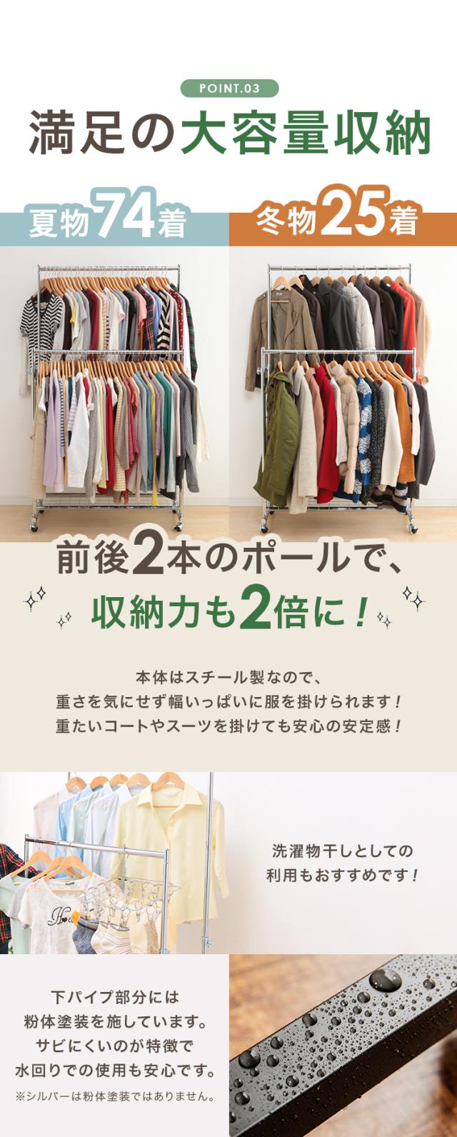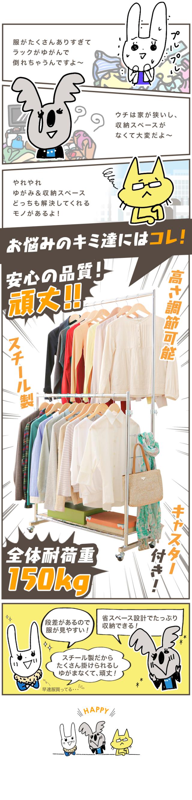 服をかけても、移動しても、グラつかない耐荷重150kgタイプのパイプハンガーです!