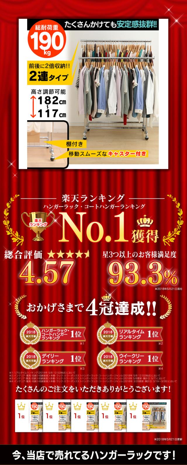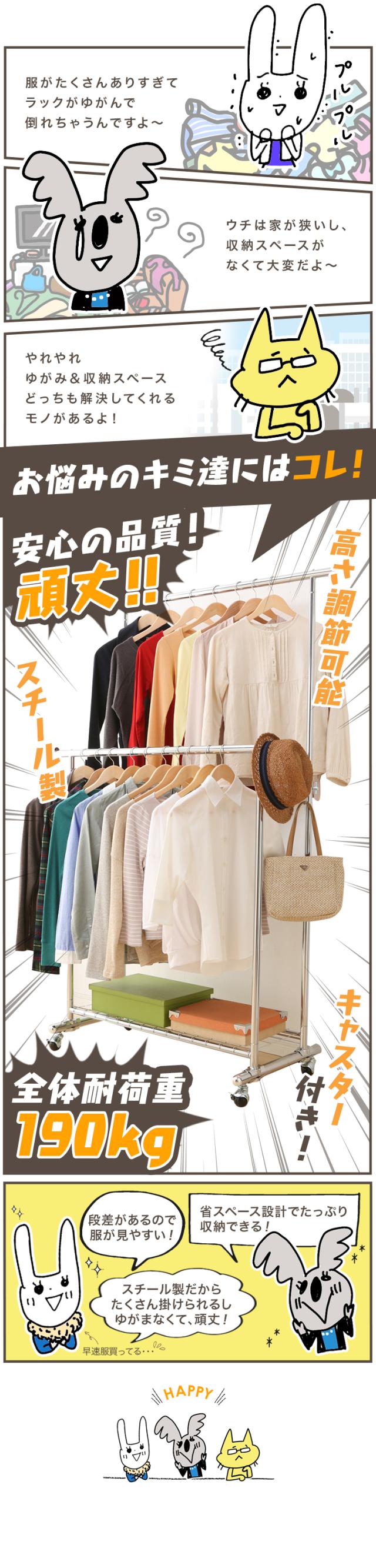 服をかけても、移動しても、グラつかない耐荷重190kgタイプのパイプハンガーです!