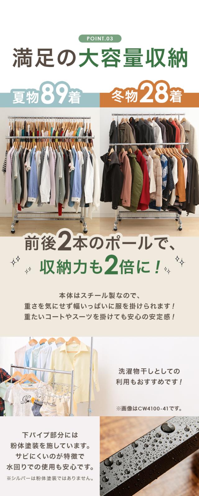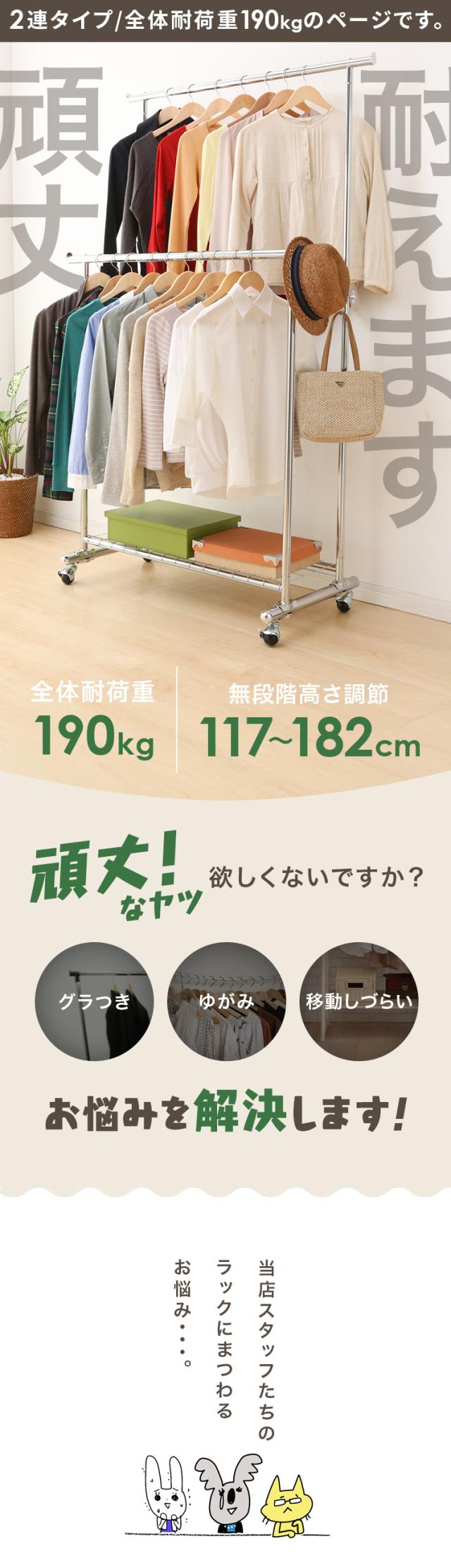 ハンガーラック 2連 総耐荷重190kg CW4100-T1 コートハンガー パイプハンガー 頑丈 ダブル