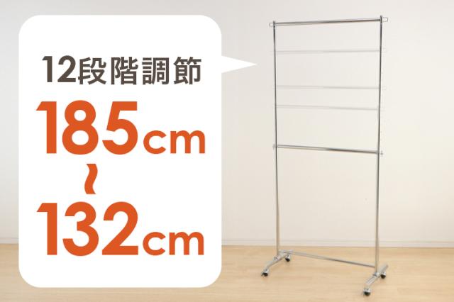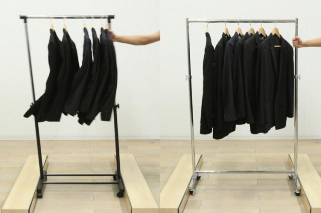服をかけても、移動しても、グラつかない耐荷重116kgタイプのパイプハンガーです!