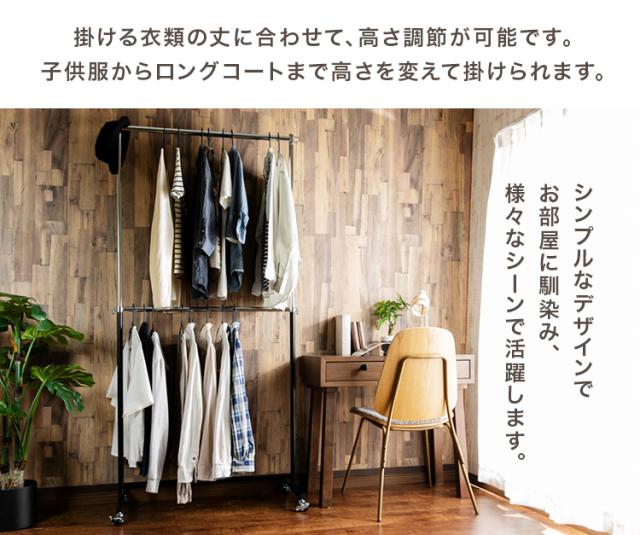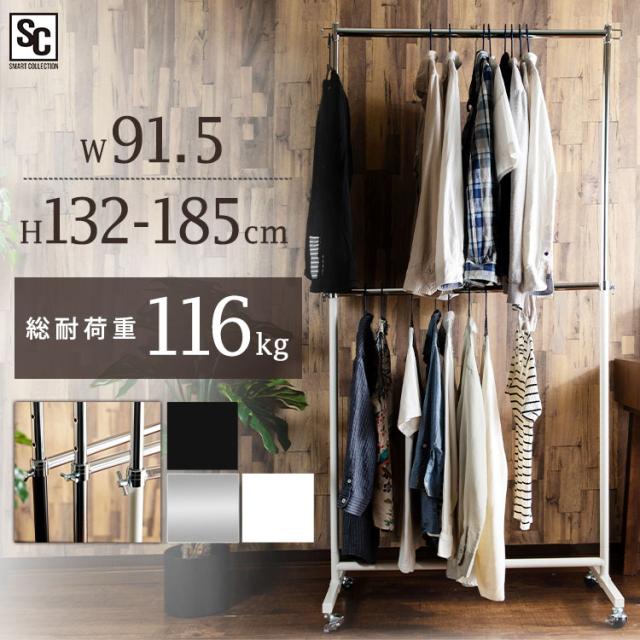 ハンガーラック キャスター付き 2段 高耐荷重 総耐荷重116kg コートハンガー パイプハンガー CW3001-78 頑丈 高さ調節 ポールハンガー スチールハンガー スチールラック キャスター ダブル ハンガーラック パイプハンガー 新生活 インテリア