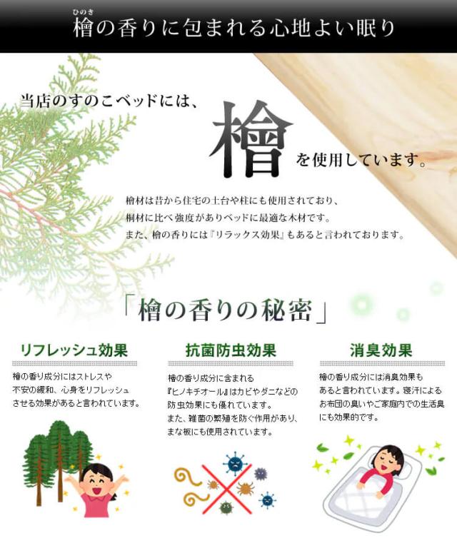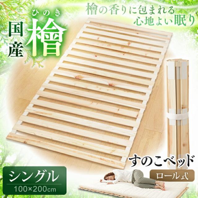 ★全品対象250円offクーポン★ ベッド すのこベッド シングル すのこ 檜すのこベッド ロール式 シングルサイズ 一人暮らし 湿気対策 スノコベッド ひのき すのこマット 国産 日本製 通気性 ヒノキマットベッドマット