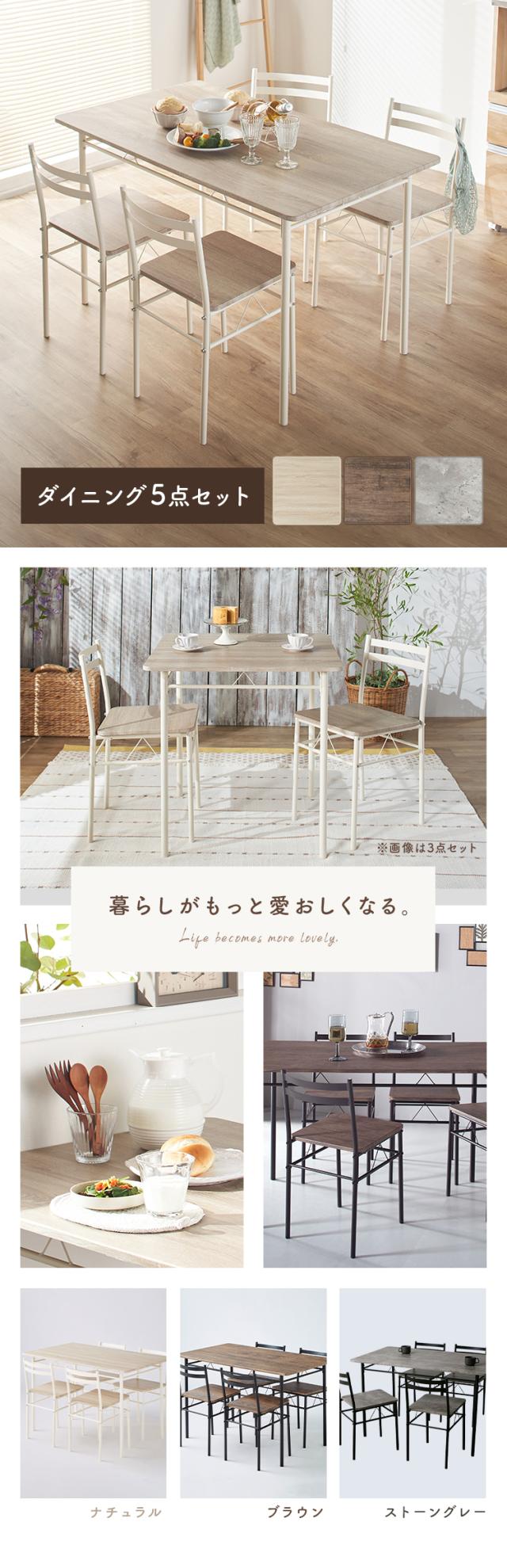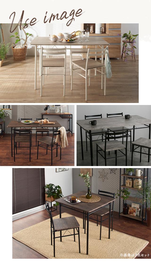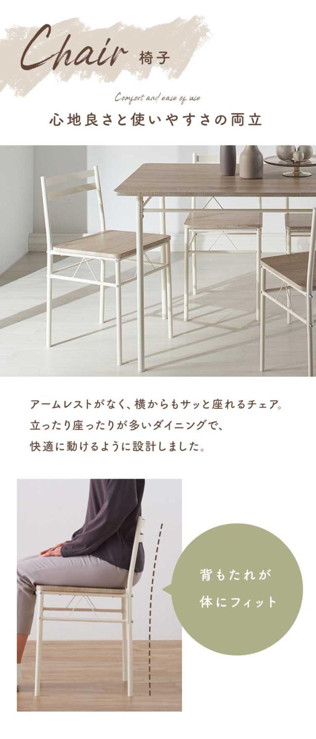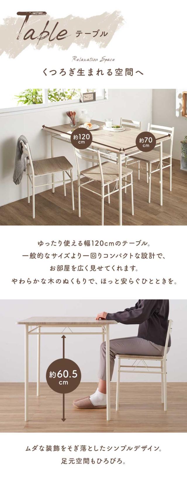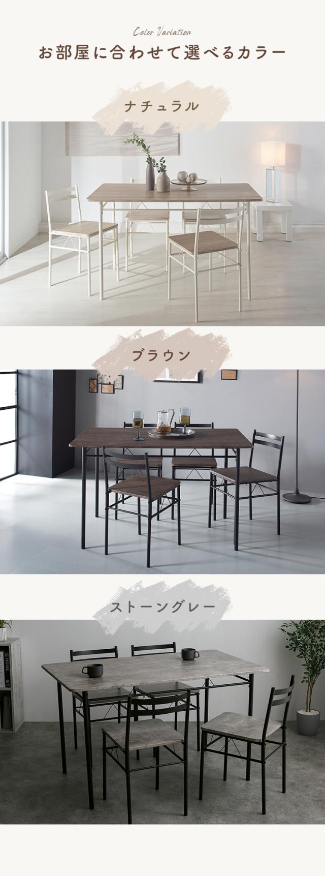※2026年1月10日 ストーングレーを追加しました。3〜4人家族にぴったりサイズのダイニング5点セットです。120×70cmの天板サイズで、省スペースにも対応。シンプルなデザインで、オフィスや店舗用としても。