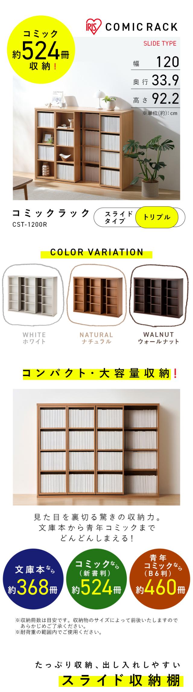 本棚 大容量 おしゃれ スライド アイリスオーヤマ コミックラック 4段 幅120 奥行約34 高さ約92 スライド式本棚 収納棚 ラック 収納 棚 ブックシェルフ ディスプレイラック 漫画収納 マンガ コミック 推し活 スライドタイプ トリプル CST-1200R * 送料無料