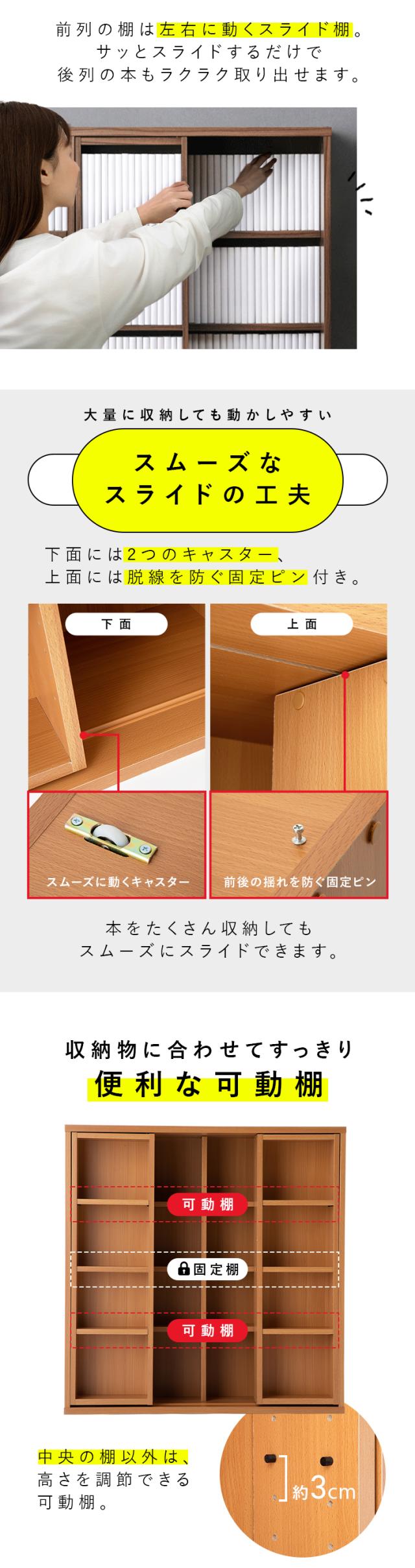 (検索用:本棚 大容量 おしゃれ スライド 2列 コミックラック 4段 幅90 奥行約29 高さ約92 収納棚 ラック 収納 棚 ブックシェルフ ディスプレイラック 漫画収納 マンガ コミック スライドタイプ ダブル アイリスオーヤマ 4967576815178 4967576815185 4967576815192)