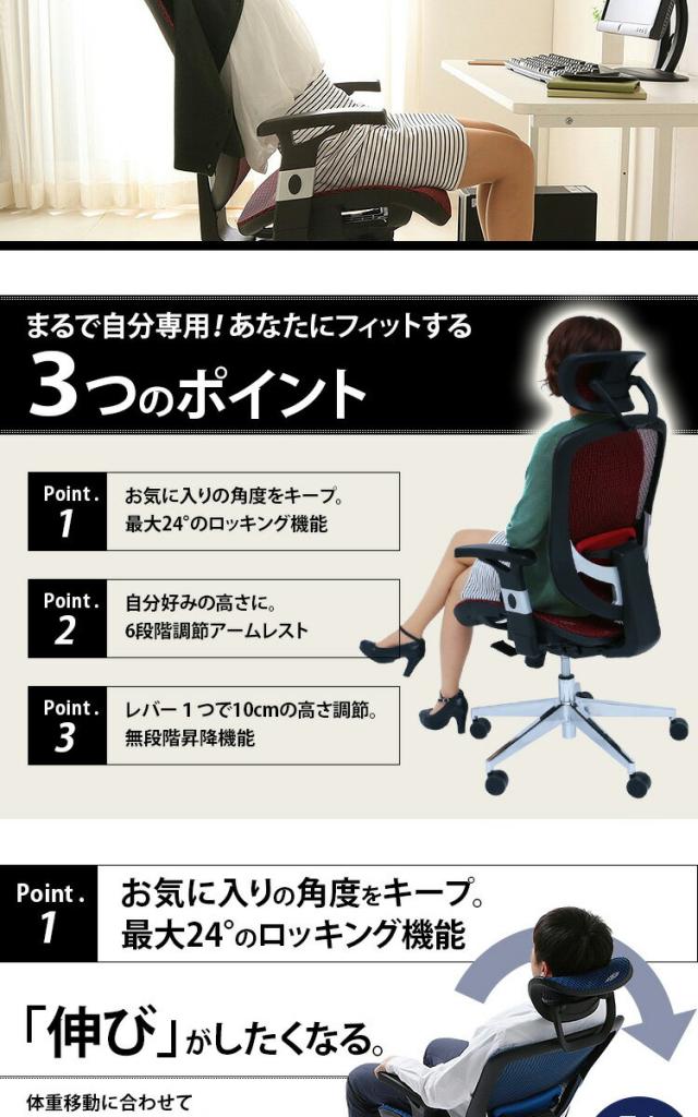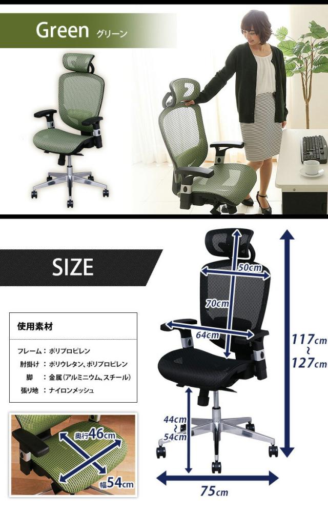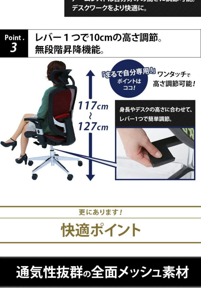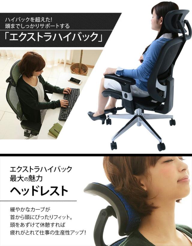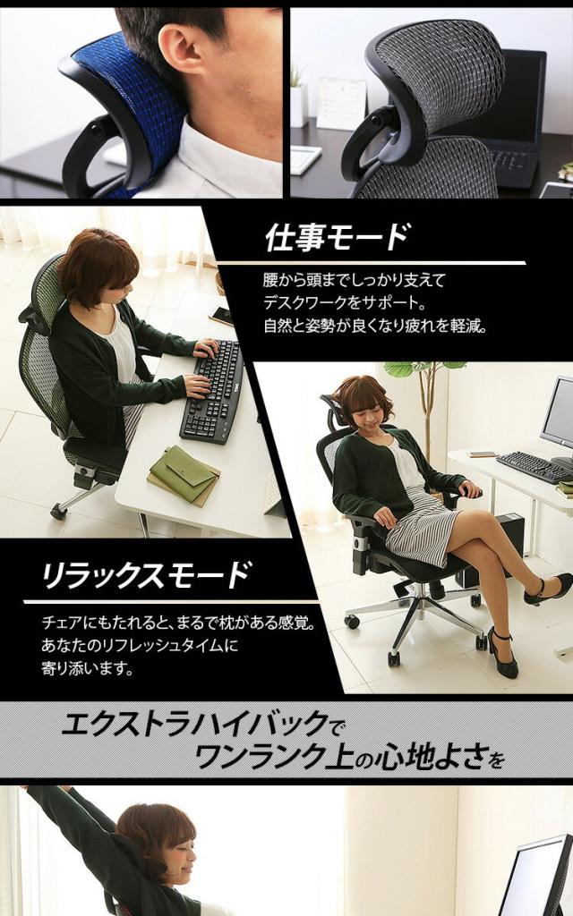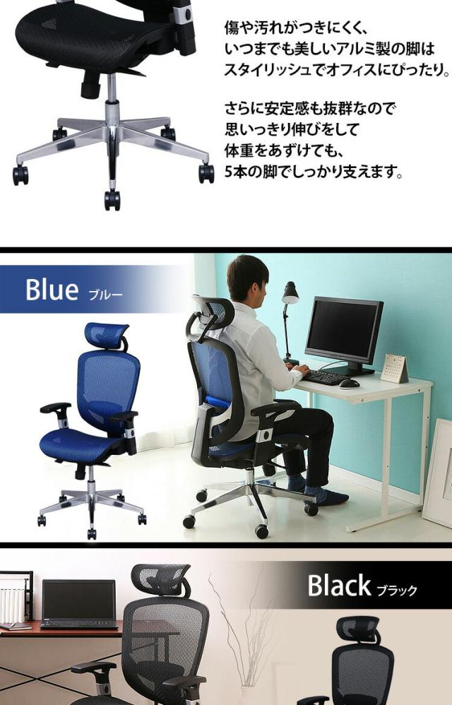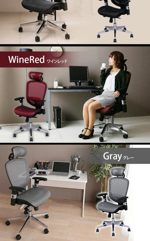 通気性の良いメッシュ素材を使用したハイバックタイプのオフィスチェアー!
