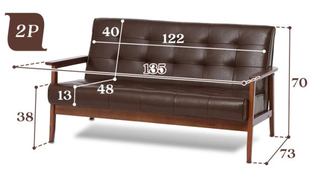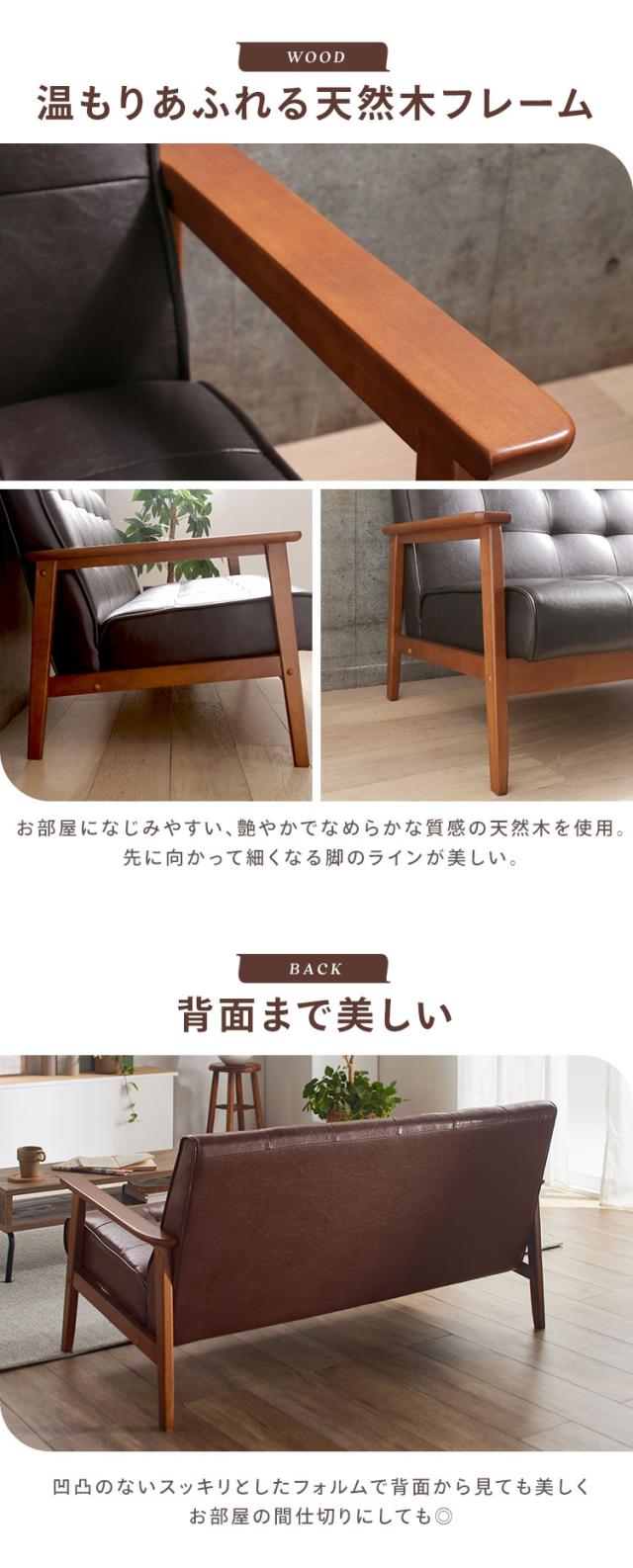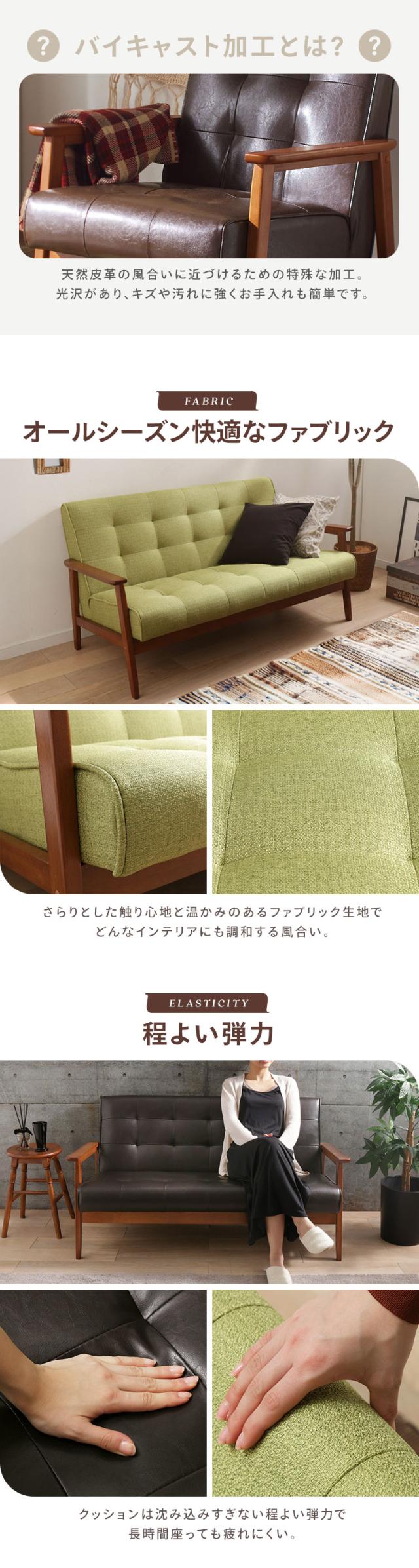 ソファー 2人掛け レザー調 レトロ ヴィンテージ風 おしゃれ ファブリック シンプル 肘掛け付 肘付 天然木フレーム 程よい弾力 クッション 簡単組立 ソファーチェア ソファ リビング インテリア 新生活 二人用 二人掛け ふたり掛け 二人用ソファー *