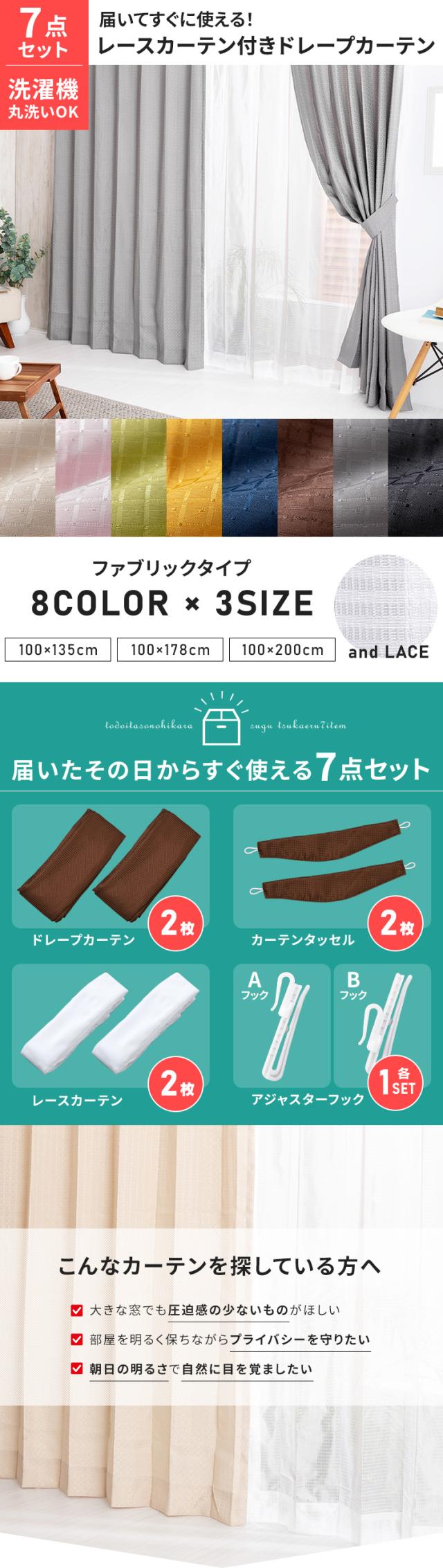 ★全品対象250円offクーポン★ カーテン レース ドレープカーテン セット 北欧 4枚セット ドレープカーテン&レースカーテン付き 幅100cm 丈135cm 178cm 200cm 4枚カーテンレース ウォッシャブル 4枚セット レース 無地 アイリスプラザ 新生活 インテリア