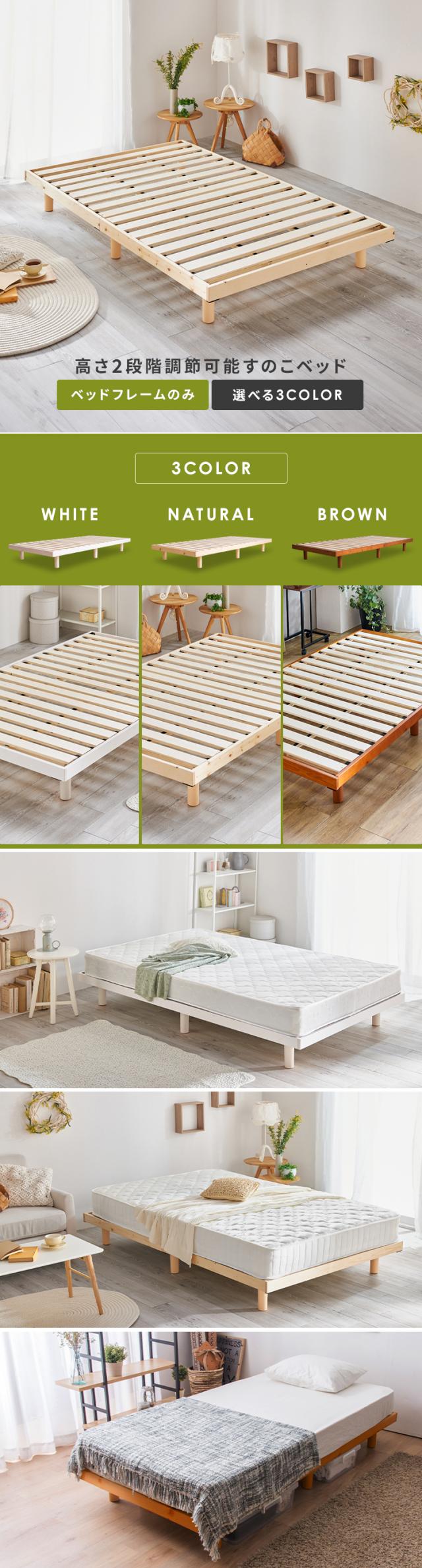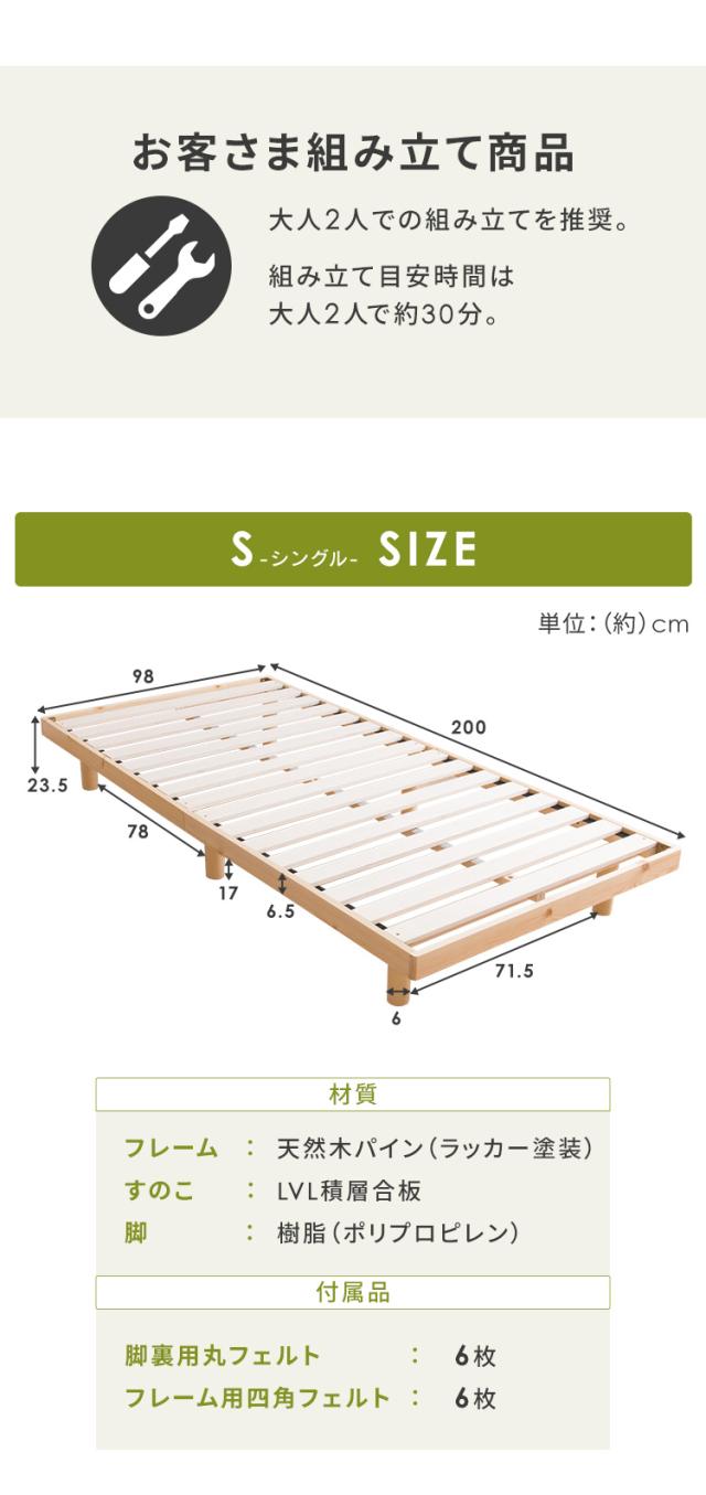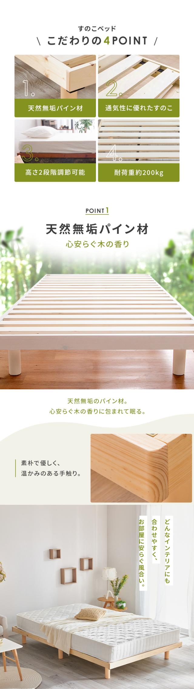 ベッド すのこ ローベッド フレーム すのこベッド シングル 組み立て簡単 ベッドフレーム シングルベッド 天然無垢 パイン材 通気性 湿気対策 ローベット すのこベット 高さ 2段階調節 一人暮らし 新生活 2段階天然木スノコベッド *