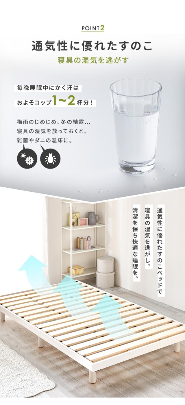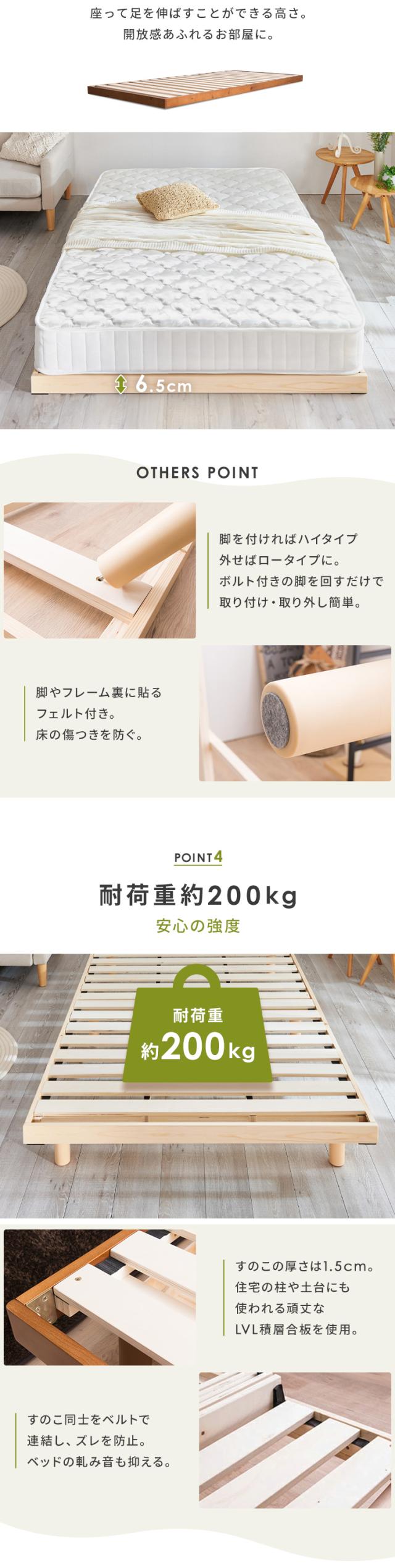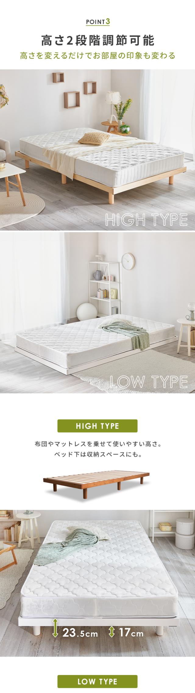 高さ2段階、場所を選ばないヘッドレスタイプのがっちりスノコベッドです。