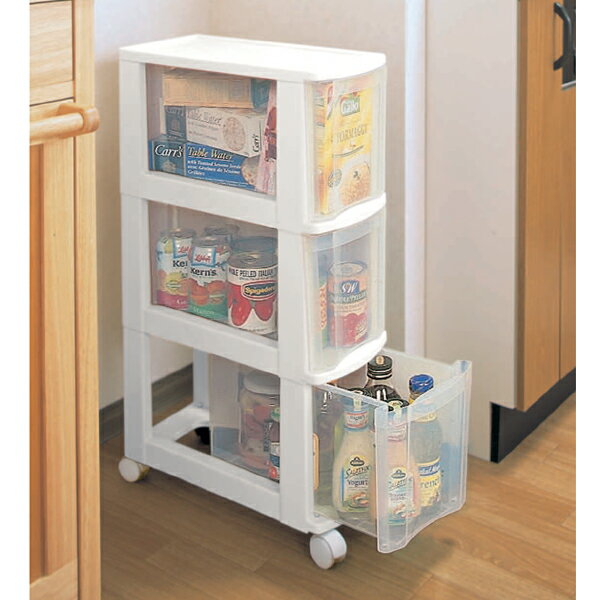 ★クーポンあり★ 隙間収納 20cm キッチンワゴン 3段 キャスター付 スリム すき間収納 キッチン 洗面所 ランドリー 収納 キッチンラック 棚 ストッカー スリムストッカー 組み立て不要 収納ボックス 引き出し クリア アイリスオーヤマ スリムチェスト *