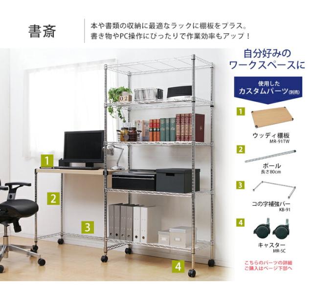 アイリスオーヤマの別売パーツと組み合わせて、オリジナルのシステムラックを作れます。