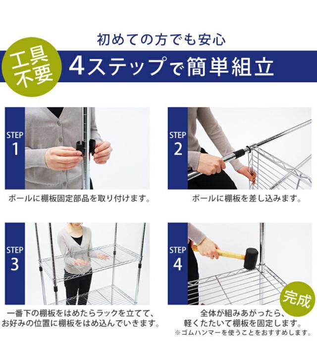 ポール直径25mmで軽量タイプ、クロームメッキ仕上げのメタルシェルフです。