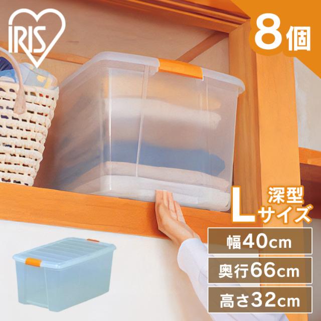 【8個セット】 収納ケース 収納ボックス クリアボックス 衣装収納ケース コンテナ プラスチック フタ付 蓋付 Lサイズ深型 取っ手付 透明 クローゼット 押し入れ 押入 服 大容量 深型 積み重ね 天袋 収納 アイリスオーヤマ 高い所ボックス TB-64D *