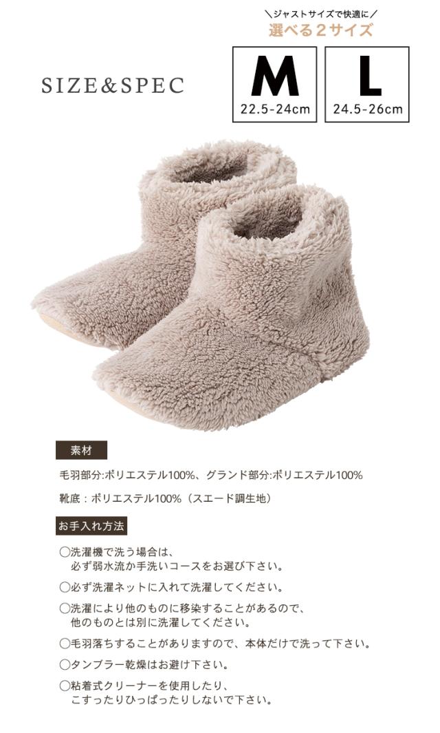 ポリエステル100%(マイクロファイバー)、表地パイル長約9mm、裏地パイル長約10mm、靴底ポリエステル100%(スエード調生地)