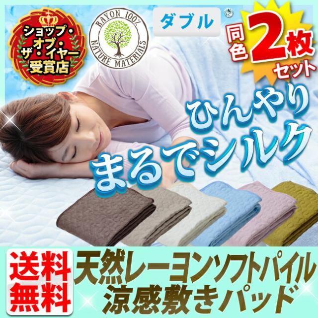 敷きパッド ダブル 2枚セット 夏 冷感 タオル地 送料無料 レーヨン ソフトパイル 接触冷感 冷却
