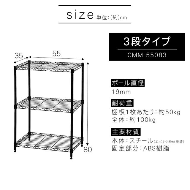 スチールラック 幅55 3段 メタルラック ホワイト ミニ ラック 棚 収納棚 スチール 白 黒 おしゃれ シェルフ オープン 一人暮らし 新生活 アイリスオーヤマ CMM-55083 * 新生活 インテリア