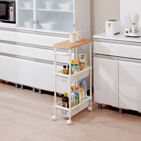 キッチンワゴン アイリスオーヤマ キャスター付き キッチンワゴン MKW-WT3S スリム ワゴン収納 ラック キッチンワゴン 台所収納 整理 キッチン収納 ウッドトップメタルポールワゴン スリム 幅22×奥行き50.5×高さ77cm キッチンキャスター付き 新生活 インテリア
