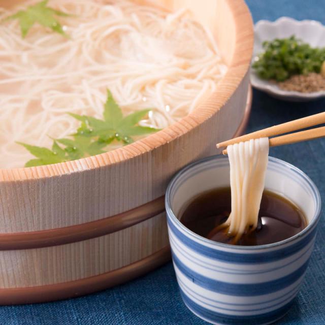 美味しいそうめんを手軽に味わいたい、そのような要望に応えて本格的な生そうめんと乾麺の手軽さをドッキングさせました。素材にもとことんこだわり、厳選した小麦粉は香り豊かな徳島県美馬三好産の上質なものだけをつかい、塩は日本一美しい海といわれる室戸阿南海岸国定公園中林でつくられるミネラル豊富な自然塩をつかっています。ほんの少し使用するごま油も添加物を一切使用していない最高級の玉絞め絞りのごま油をつかっています。こだわり抜いてつくりあげたこの食感は、いままでのそうめんの常識をくつがえすようなやみつきの美味しさです。