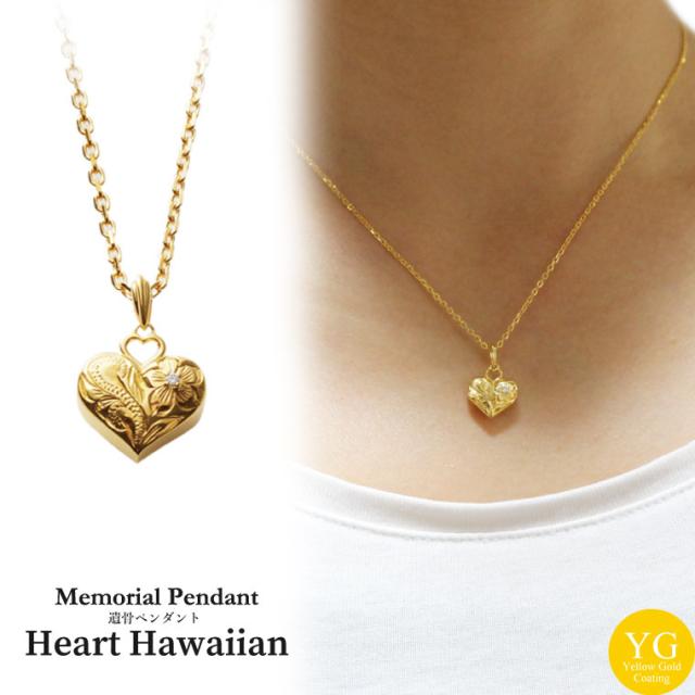 遺骨ペンダント メモリアルジュエリー 「 ハート ハワイアン 」 ダイヤモンド ゴールド【 シルバー925 Gold】