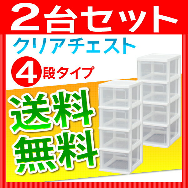 チェスト 4段[完成品]2台セット クリアチェスト 組立不要 スリムチェスト S-304【アイリスオーヤ
