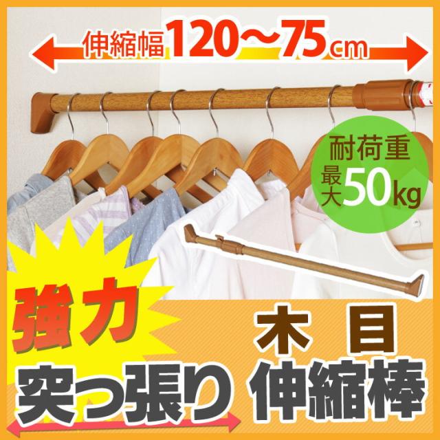 伸縮棒 つっぱり棒 木調強力伸縮棒 H-MNPJ-120 送料無料 幅75〜120cm 突っ張り棒 強力 つっぱり 突っぱり 棒