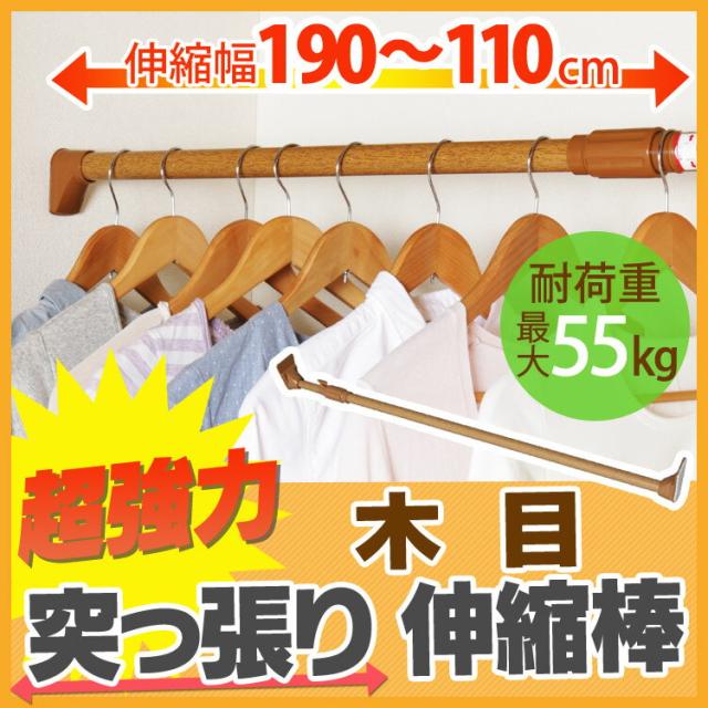 伸縮棒 つっぱり棒 木調強力伸縮棒 H-MUPJ-190 送料無料 幅110〜190cm 突っ張り棒 強力 つっぱり 突